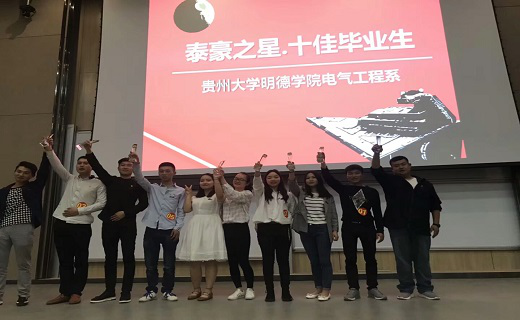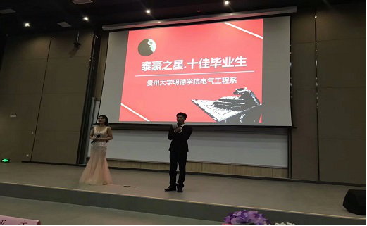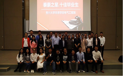 2018年5月2日晚下午4点30分,贵州大学明德学院电气工程系“泰豪之星”十佳毕业生评选活动在图书馆礼堂隆重举行。莅临本次的嘉宾有院长吴天祥教授,常务副院长罗卫东教授,副院长谢静女士,院长助理学工部部长宿强老师,学工部副部长张吉林老师,学工部副部长王朋虎老师,传媒系党总支副书记曾林老师,经济系党总支负责人林红老师,管理系党总支负责人徐娟老师,电气工程系系主任王许老师,电气工程系党总支负责人吴海燕老师,党群工作部吴扬老师、院团委肖皓丰老师,以及各系部老师,电气系全体老师,十佳毕业生候选人亲友团。