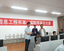 2018年5月14日晚18:30,我系在A313、A316机房举办“信息工程系第一届程序设计大赛”,此次比赛共有47名同学参加,江奇峰、董秀云、王朋虎、丁操、李燕琴、王佳尧、彭滨等老师出席此次活动并负责监考。在各老师、各学生会成员的默契配合和同学的积极参与下,此次活动了取得圆满成功。