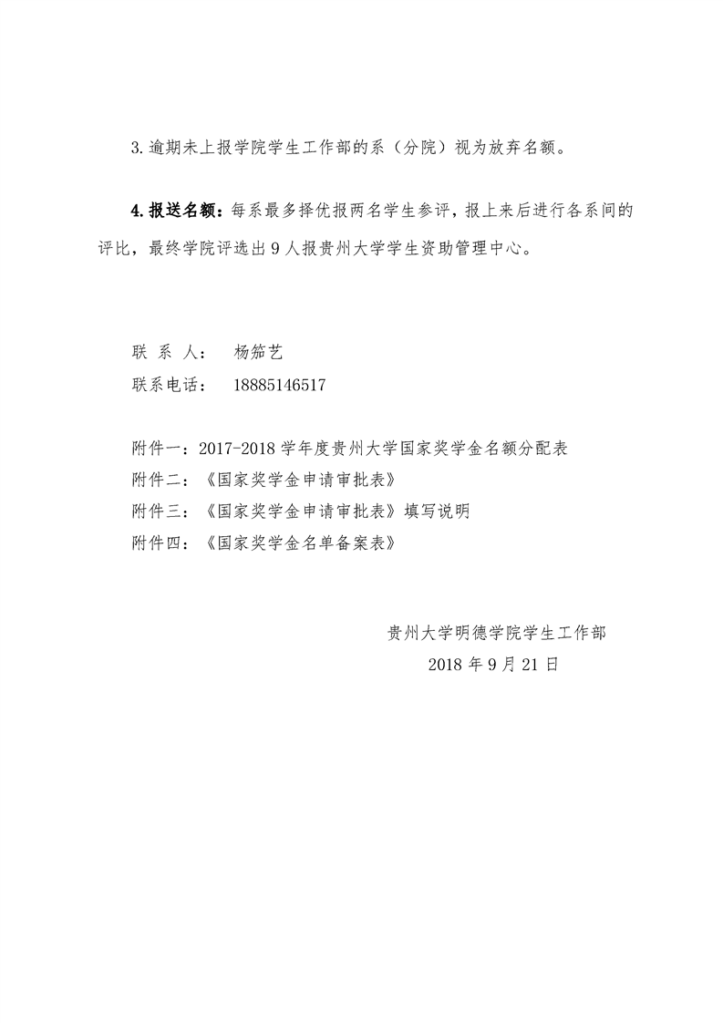 关于做好贵州大学明德学院2017-2018学年国家奖学金评选工作的通知