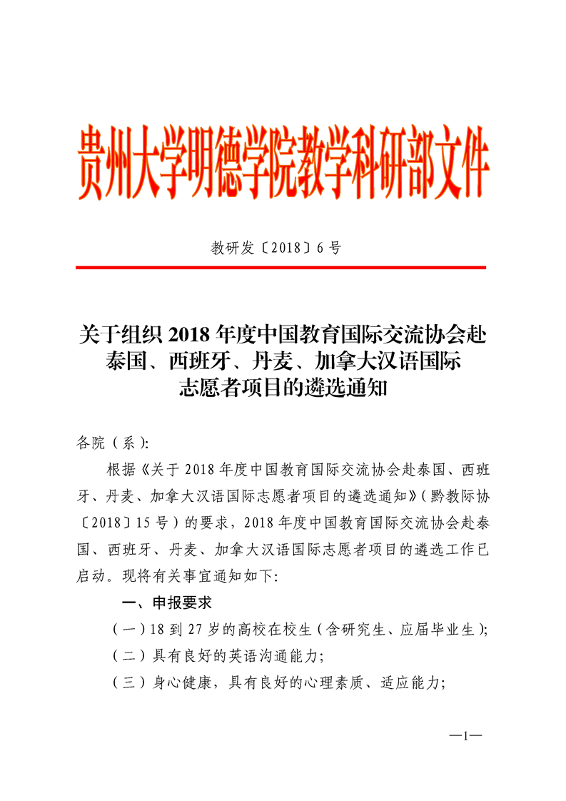 关于组织2018年度中国教育国际交流协会赴泰国、西班牙、丹麦、加拿大汉语国际志愿者项目的遴选通知