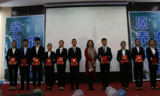 每一位选手都站上这个展示自我的大舞台,呈现了最完美的自己。经过教师评委和学生评委评分,最终熊礼琴同学以最高分71.9分的成绩获得第一名,王丹以68.77分的成绩获得第二名,杨蓉以68分的成绩获得第三名。由副院长谢静女士为他们颁奖,所有选手上台合影留恋。