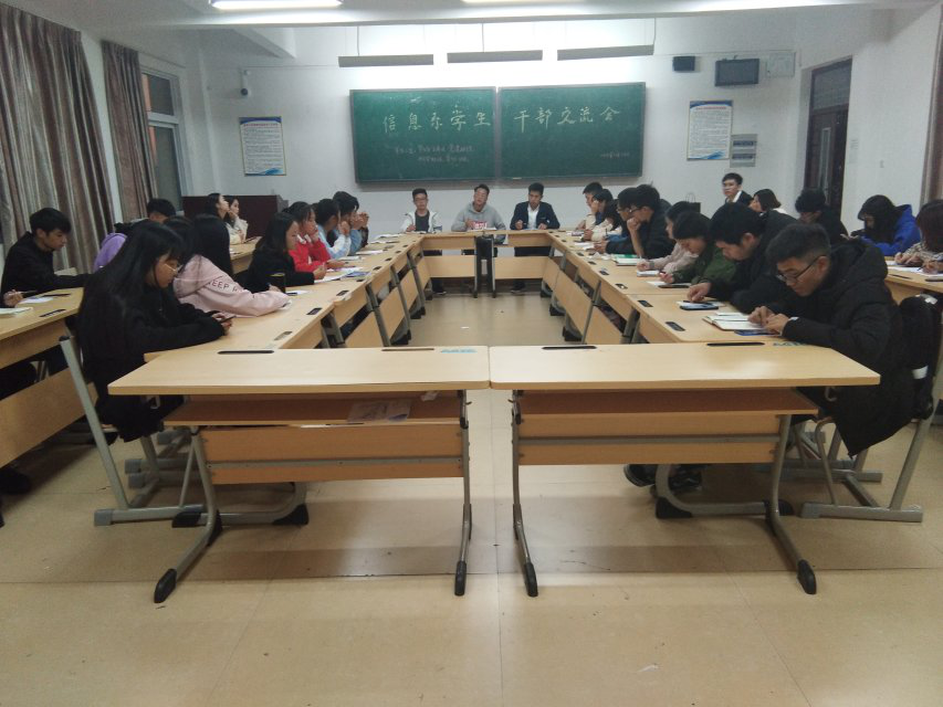 2018年11月28日,贵州大学明德学院信息工程系举办了学生干部交流会,此次大会旨在促进学生干部了解学生组织的发展和规划,坚定学生干部理想信念,加强学生干部间的沟通交流,便于日后工作的开展,提高工作效率。