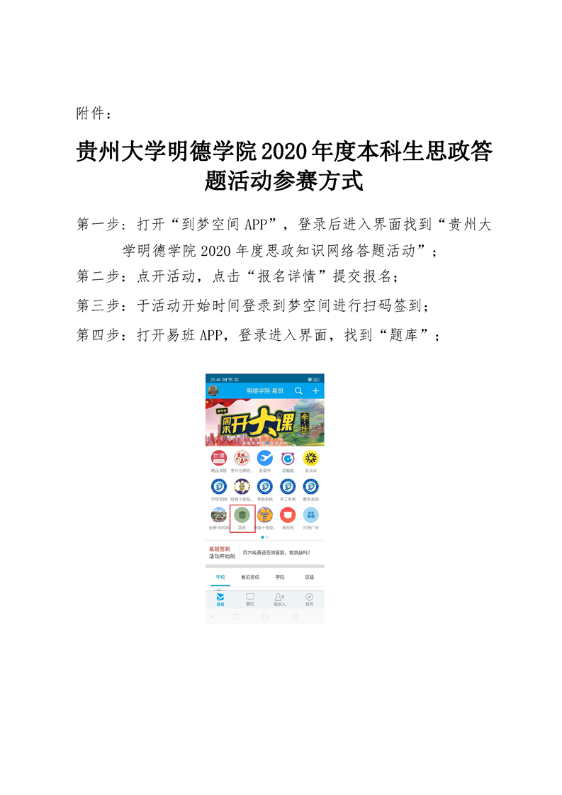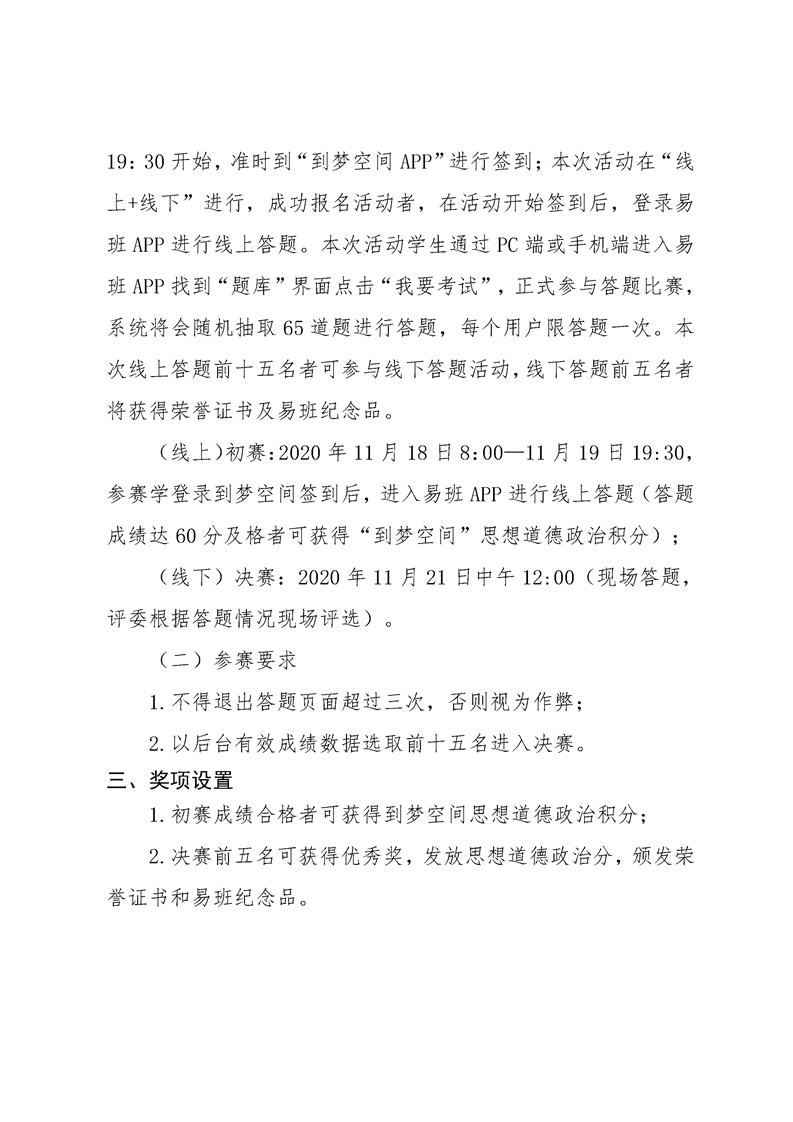 关于在学院易班开展2020年度思政知识网络答题活动的通知