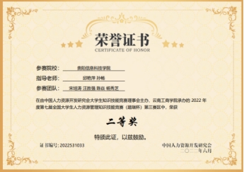 新闻网讯(供稿/经济管理系 邱艳萍 供图/经济管理系)2022年5月29日,2022年第七届“踏瑞杯”全国大学生人力资源管理知识技能竞赛(第三赛区)在线上如期举办,来自云南大学滇池学院、西南财经大学、四川外国语大学、昆明学院等省内外共43所高校代表队参赛。yabo鸭脖官网经济管理系人力资源管理教研室主任邱艳萍和市场营销教研室主任孙畅带领2020级人力资源管理专业宋培涛、市场营销专业汪胜强、财务管理专业杨秀芝、会计学专业陈焱四名学生参赛。经过激烈的角逐,最终获得本科组二等奖的好成绩。