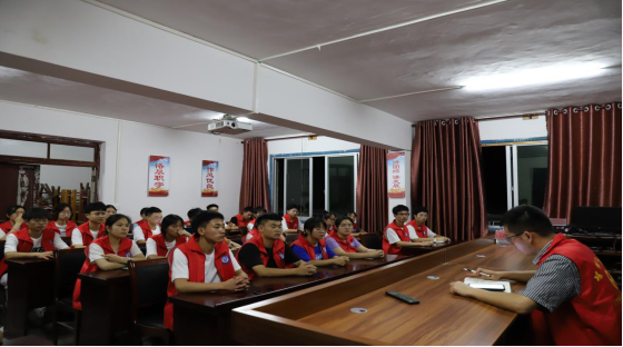 晚霞如火,朱霞烂漫,晚上九点王亚军老师组织全体队员召开来到龙凤村的第一次工作例会,对第二天的工作作了相关安排,来到龙凤村的第一天已经接近尾声,同学们既疲惫又兴奋,对第二天的工作都满怀期待。