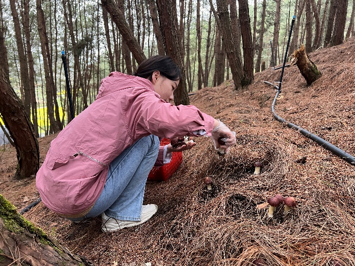 23日早8时30分,yabo鸭脖官网经济管理系师生7人来到曹家庄村赤松茸种植基地。在驻村第一书记王天鹏的介绍下,志愿小队了解到平均海拔约1200米的曹家庄村因地制宜,立足特色资源,利用林地优势,发展林下经济——赤松茸产业。在进一步的交谈中,志愿队得知三月正值赤松茸春收时节,如不及时采摘,会对赤松茸的品相造成严重影响。撸起袖子就开始干!茂密的松林下,一个个忙碌的身影行走在沟垄间,不时弯腰蹲下,轻轻拨开耸起的松针,探访赤松茸的“藏身之处”,捏住松茸根部,轻轻旋转,抖去泥土,这便完成一次采摘。在志愿者队伍中,既有党员,也有团员,用实际行动诠释当代青年的使命担当。他们热情饱满,充满干劲,不知疲倦。采完一座山头,又去到后山继续采摘。