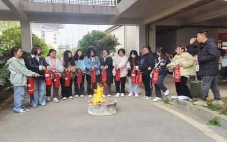 讲座结束后,在微型消防站空地处举行干粉灭火器灭火演练,严老师再次强调干粉灭火器的使用技巧和注意事项,以“互助协调”为原则,分组轮流上前操作,整个过程有条不紊,学生们最终熟练掌握灭火器的使用方法。