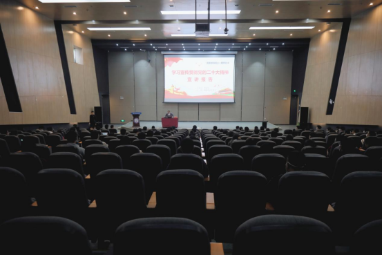 新闻网讯(供稿/供图 党群工作部)为深入学习宣传贯彻党的二十大精神,加深全校师生对党的二十大重大意义的认识,准确领会把握党的二十大精神的思想精髓和核心要义,确保将党的二十大精神融入学校立德树人全过程,11月18日下午,在做好疫情防控的前提下,鸭脖党委书记郭林桦在图书馆报告厅作题为《深入学习贯彻党的二十大精神,大力加强学校党的建设工作》专题讲座,师生代表共计150余人参与本次宣讲活动。本次活动为鸭脖“党政领导同上一堂思政课”系列宣讲活动第一讲,由党群工作部部长吴扬主持。
