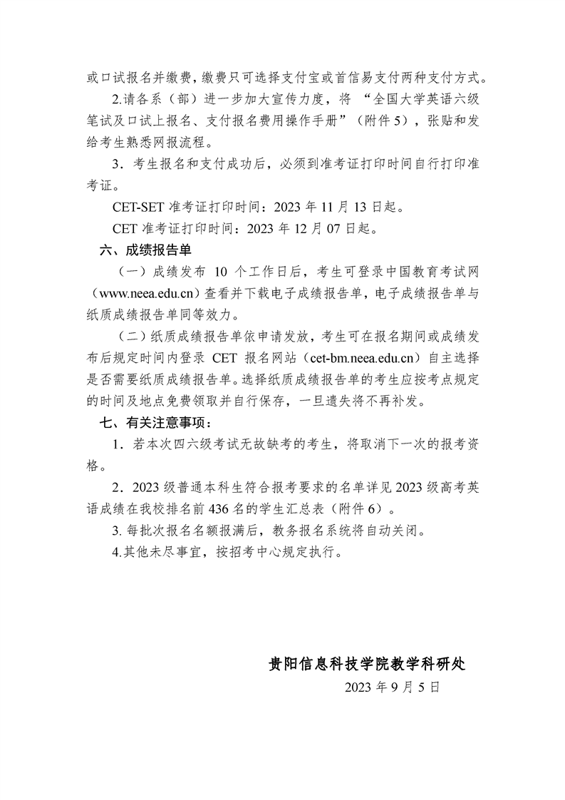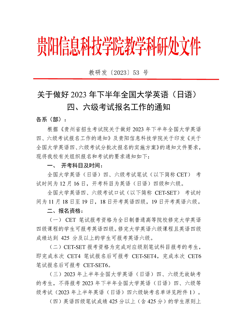 关于做好 2023 年下半年全国大学英语(日语)四、六级考试报名工作的通知