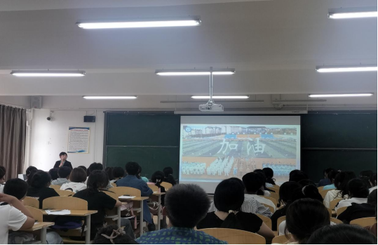 第四节团课:《学习习近平新时代中国特色社会主义思想》,主讲老师:肖蕊。肖蕊老师通过问答方式,现场分析同学们对于时政热点的关注与态度,呼吁同学们要树立正确的世界观、人生观、价值观,积极发表正确言论,鼓励同学们刻苦钻研,为国效力。