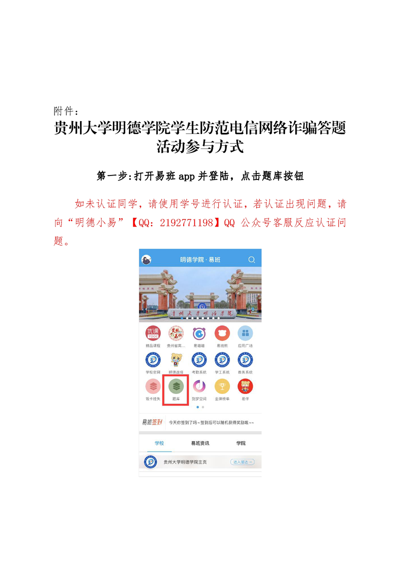关于开展贵州大学明德学院学生防范电信网络诈骗答题活动的通知