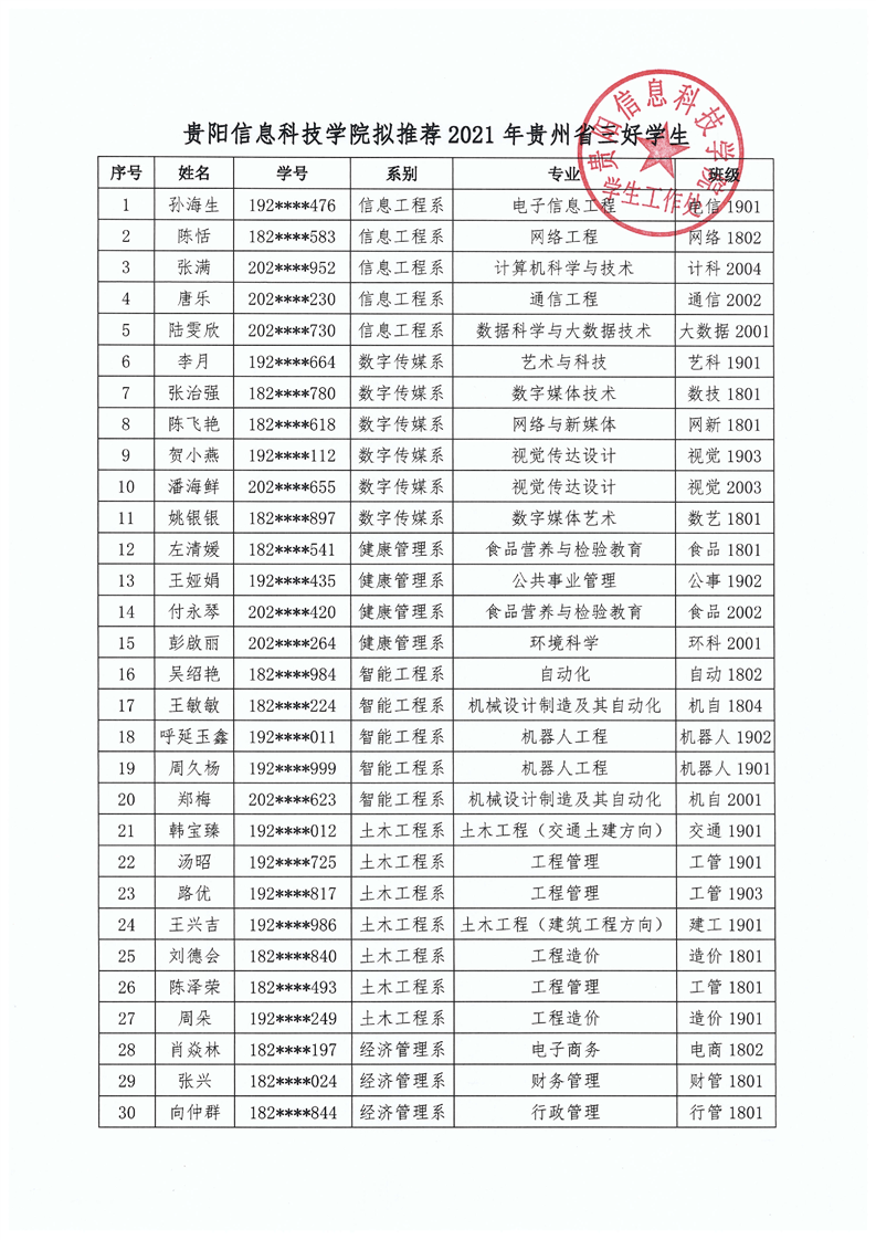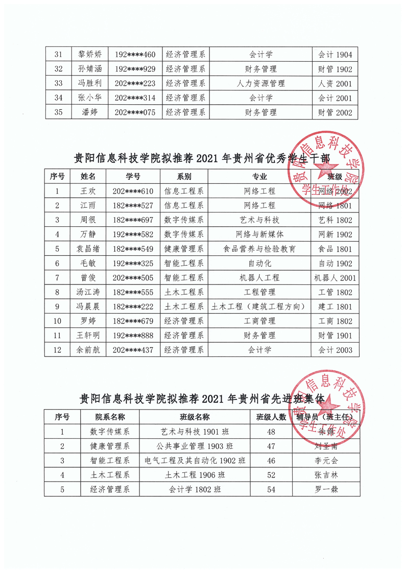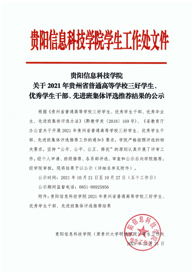 yabo鸭脖官网关于2021年贵州省普通高等学校三好学生、优秀学生干部、先进班集体评选推荐结果的公示