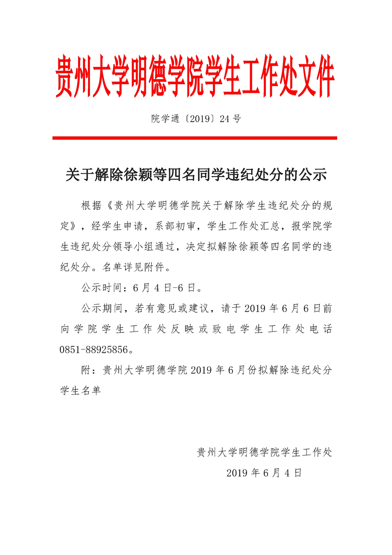 关于解除王磊、曾珏方两名同学违纪处分的决定