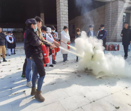 演练中,为了让大家更好的掌握消防器材的正确使用方法,结合消火栓以及生活中最常用的干粉灭火器做示范讲解,指导大家正确使用消火栓及灭火器并开展了演练。
