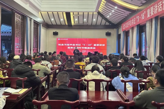 新闻网讯(供稿/供图 党群工作部)为重温习近平总书记“3·18”重要讲话发表五周年,3月21日晚,鸭脖特邀贵州师范大学马克思主义学院章凤红教授在学校阳明书院举行专题座谈会,鸭脖校长(首席治校专家)唐建荣出席,学校各系党总支书记、全体思政课教师队伍、辅导员队伍共计100余人参加此次活动。