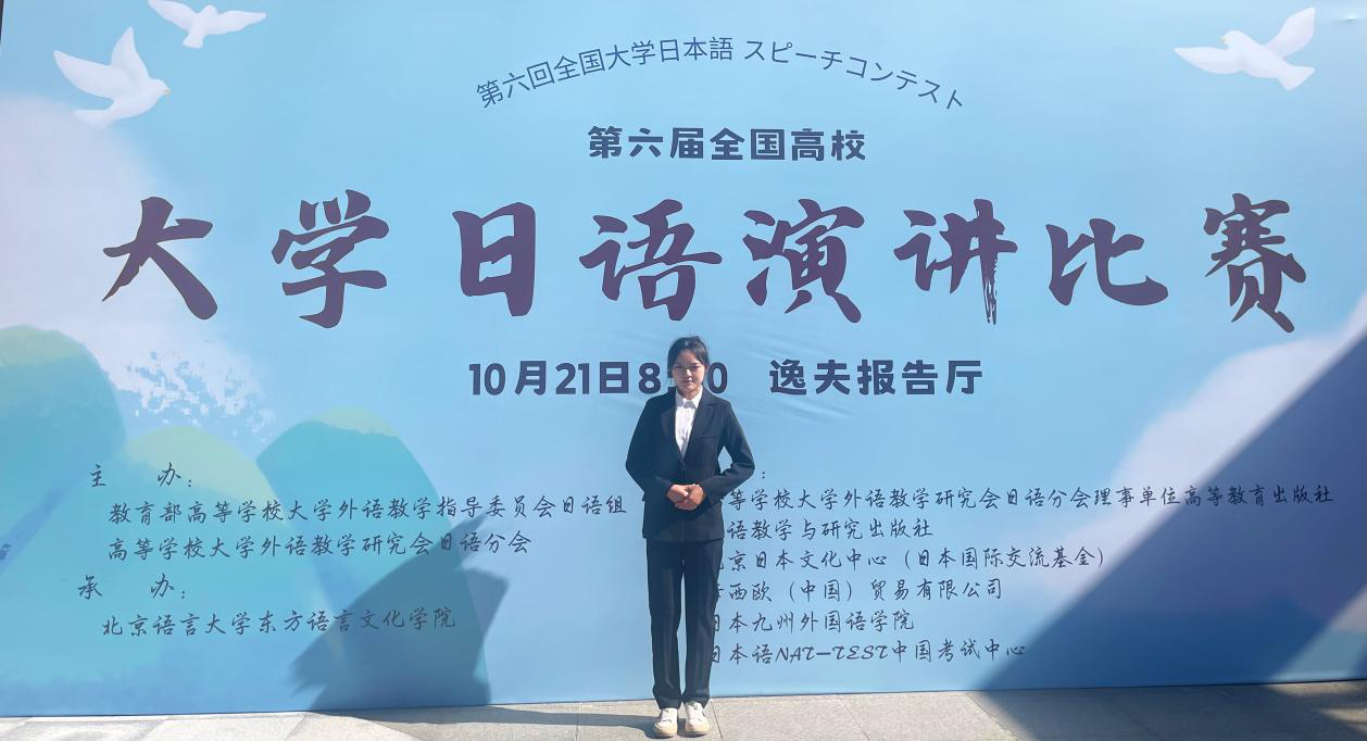 新闻网讯(供稿 朱雅兰 供图 朱雅兰)2023年10月21日第六届全国高校大学日语演讲比赛总决赛在北京语言大学盛大举行,比赛吸引了来自复旦大学、北京师范大学、延边大学等全国各高校非日语专业的杰出大学生。大赛的评审委员由北京大学的赵华敏教授、西安交通大学的张文丽教授、河南大学的王铁桥教授,以及上海外国语大学的毛文伟教授等一众备受尊敬的教育家组成。