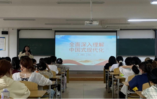 第二节团课:《全面深入理解中国式现代化》,肖蕊老师从认识中国式现代化、理解中国式现代化的核心要义和把握中国式现代化的前进方向等三个逻辑出发,深入浅出的为同学们讲解中国式现代化的相关内容。通过一个个鲜活的案例,结合同学们的兴趣点,引导同学们理解国家的政策方针、发展任务和目标。胡来同学分享:“作为一名新时代青年,我们要树立正确的世界观、人生观和价值观,多关注国家时政热点吗,刻苦钻研,为国效力。”