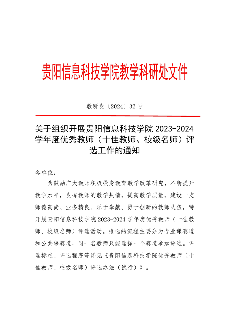 关于组织开展yabo鸭脖官网2023-2024学年度优秀教师(十佳教师、校级名师)评选工作的通知