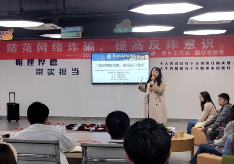 随后,数字传媒学院党总支书记肖蕊根据学生被诈骗的类型以及问卷调查结果,向大家总结了当下学生最容易被诈骗的起点在于兼职当中。通过问卷调查显示,我们通过学校海报张贴、主题班会教育、反诈宣传群以及公众号宣传等反诈安全教育方式已取得一定成效,但依然会有小部分同学存在遗漏,因次我们的工作重点应是逐个攻克这些小部分同学,既要让学生了解常见的诈骗手法,又要多措并举,让学生具备识别诈骗的能力,从而牢筑学生安全防线。