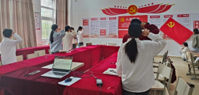 会议开始,由湛姗同志带领全体同志奏《唱国际歌》,并宣读了此次新接收的预备党员名单。随后,由湛姗同志带领全体同志右手握拳,面向党旗庄严宣誓。