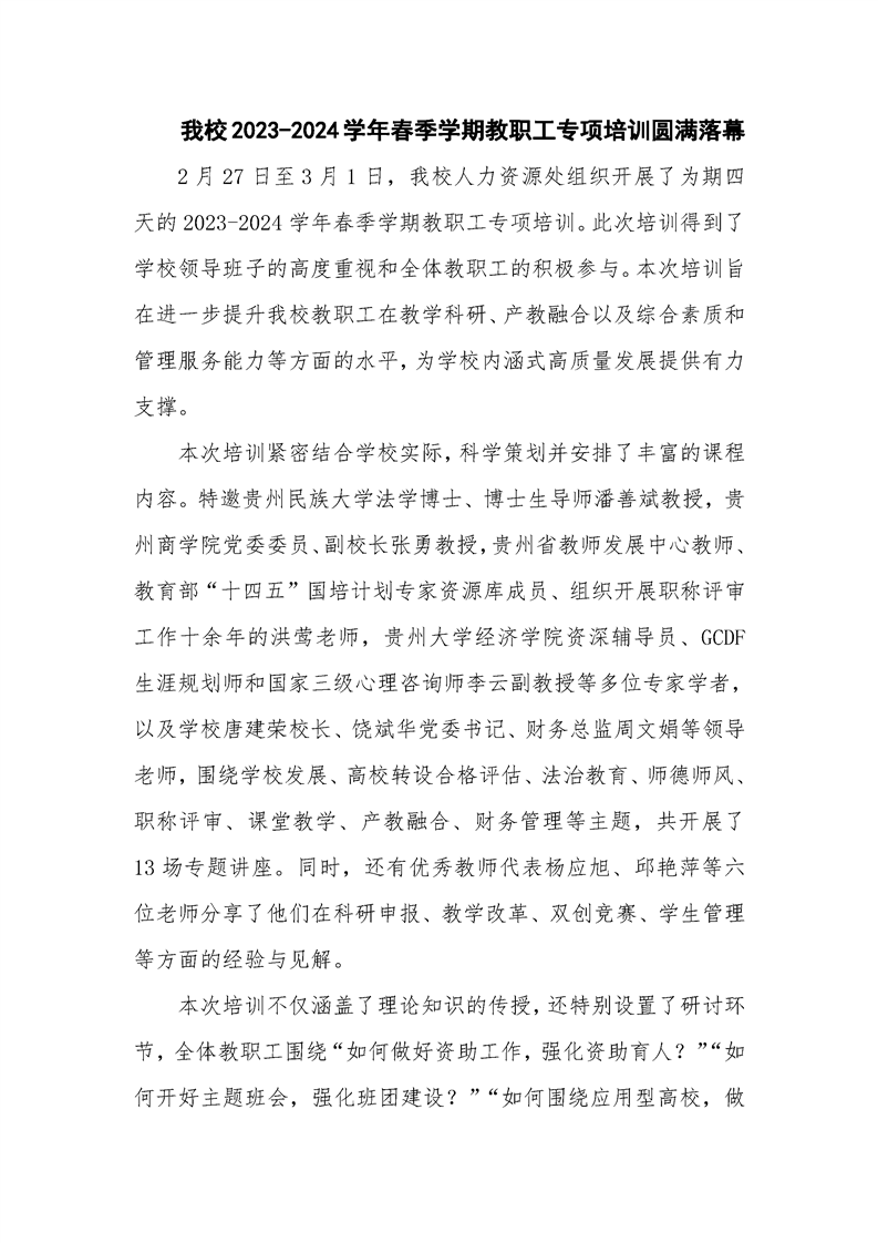 鸭脖2023-2024学年春季学期教职工专项培训圆满落幕