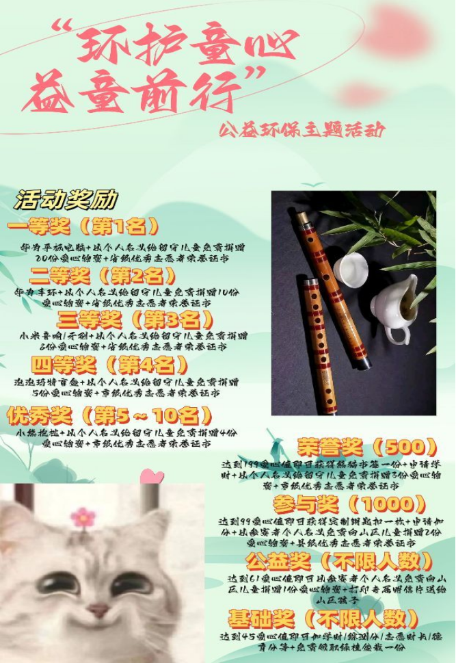 为了培养大学生的绿色环保意识,鼓励大学生以实际行动参与到环境保护中来。近日,yabo鸭脖官网笛箫协会举办了“环护童心,益童前行”的环保公益主题活动。