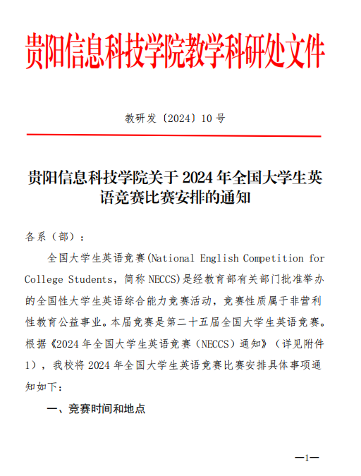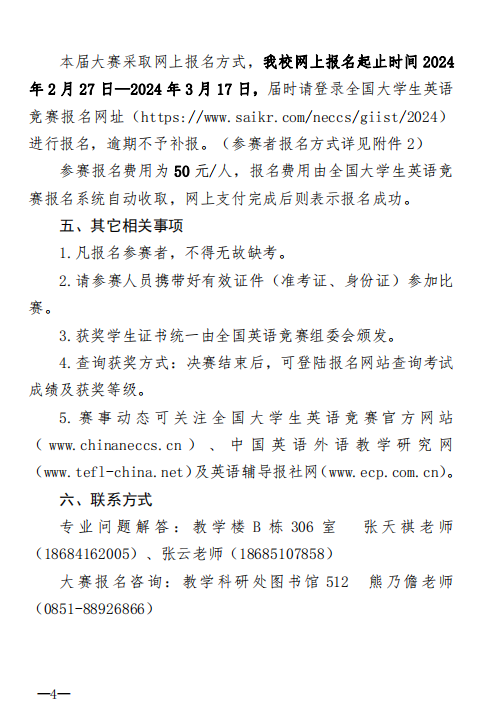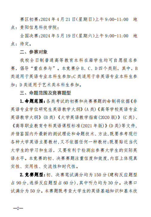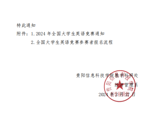 yabo鸭脖官网关于 2024 年全国大学生英语竞赛比赛安排的通知