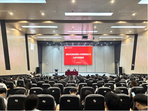 新闻网讯(供稿/供图 党群工作部)为将党纪学习教育落在实处、推向深处,帮助学校师生党员进一步学习好、领会好、贯彻好新修订的条例,6月14日上午,鸭脖特邀市纪委监委第九审查调查室主任汪波到鸭脖作党纪学习教育专题辅导,我省教育厅(省委教育工委)民办高校党组织书记、鸭脖党委书记邓维实主持会议并讲话,鸭脖各二级学院院长,党总支书记、直属党支部书记、支委及师生党员代表共计300余人参加此次活动。