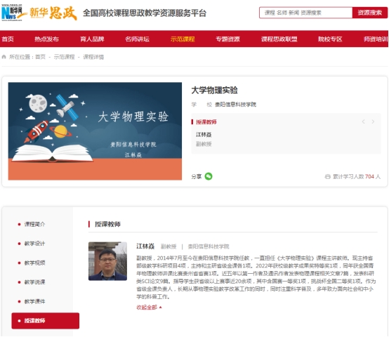 2024年春季,鸭脖《大学物理实验》《管理学概论》2门课程上线新华网“新华思政——全国高校课程思政教学资源服务”平台,全面开放共享教学设计、教学视频、教学说课、教学课件等教学资源,标志着鸭脖课程思政建设工作取得新的进展。