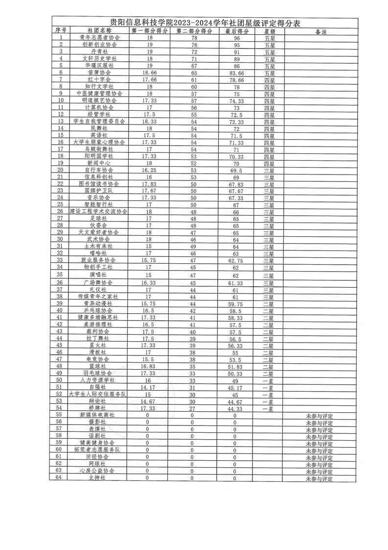 关于yabo鸭脖官网2023-2024学年 社团星级评定结果的公示