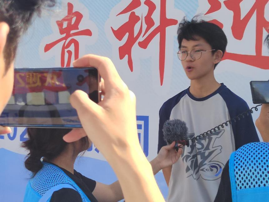 (图为宣传组对新生们进行采访)