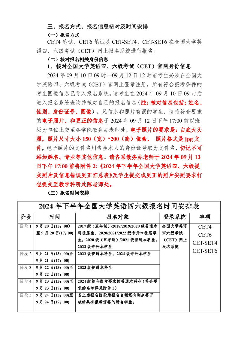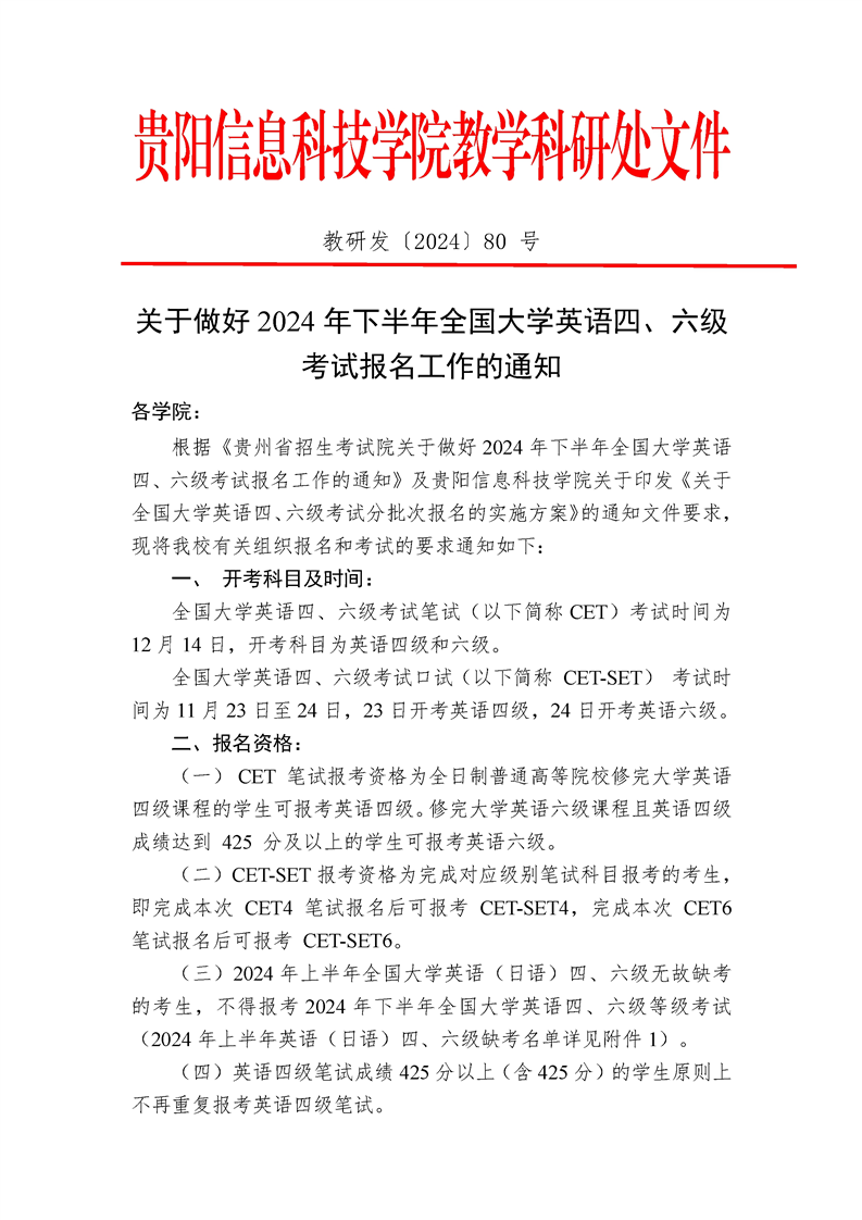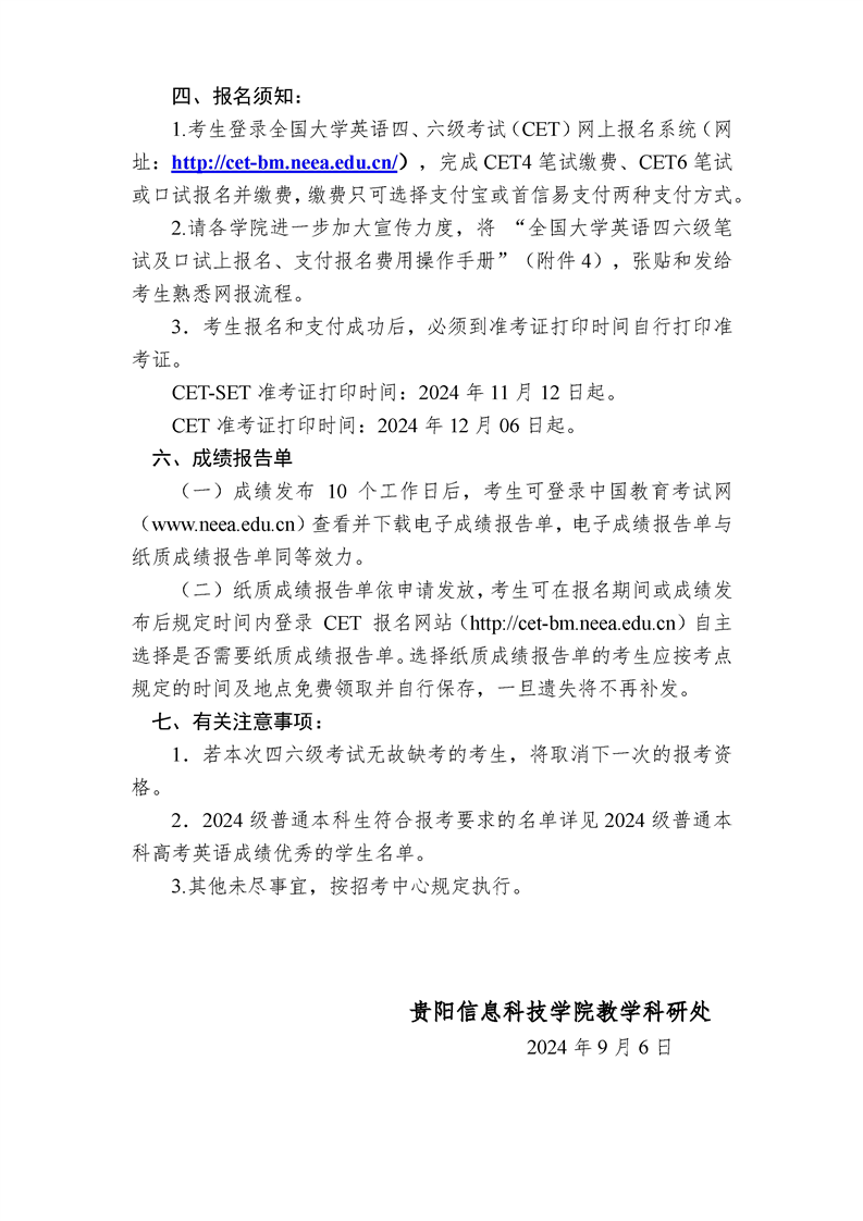 关于做好2024年下半年全国大学英语四、六级考试报名工作的通知