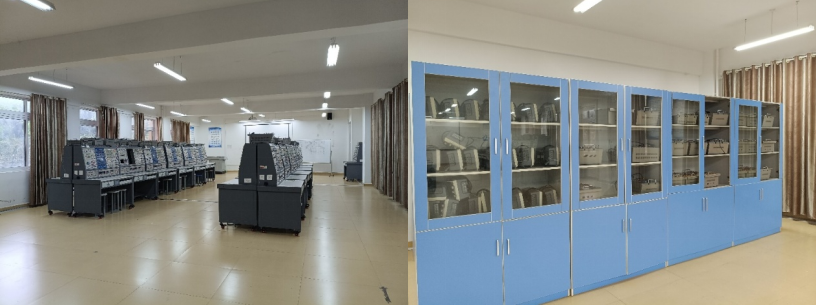 电工实验室是一个集电路实验、电工维修、电子设备调试于一体的现代化实验室。实验室中配备了多种仪器设备,包括电工电子技术实验装置、示波器、函数发生器、电源等电子设备,以及万用表、绝缘电阻测试仪等电工设备。这些设备的品牌和型号都是市场上较为知名的品牌,保证了实验室的教学质量和实验效果。