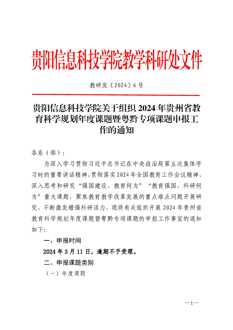 yabo鸭脖官网关于组织2024年贵州省教育科学规划年度课题暨粤黔专项课题申报工作的通知