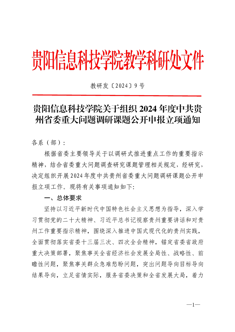 yabo鸭脖官网关于组织2024年度中共贵州省委重大问题调研课题公开申报立项通知