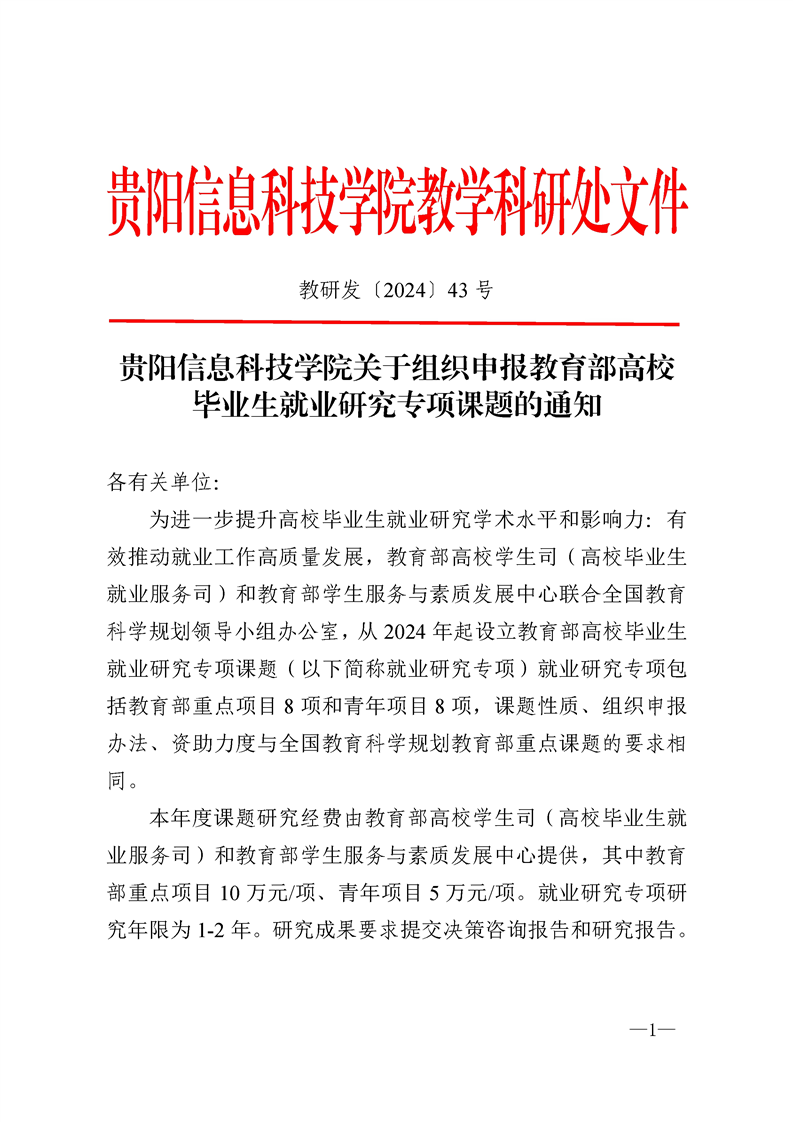 yabo鸭脖官网关于组织申报教育部高校毕业生就业研究专项课题的通知