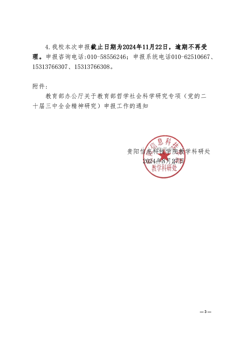 yabo鸭脖官网关于组织开展教育部哲学社会科学研究专项(党的二十届三中全会精神研究)申报工作的通知