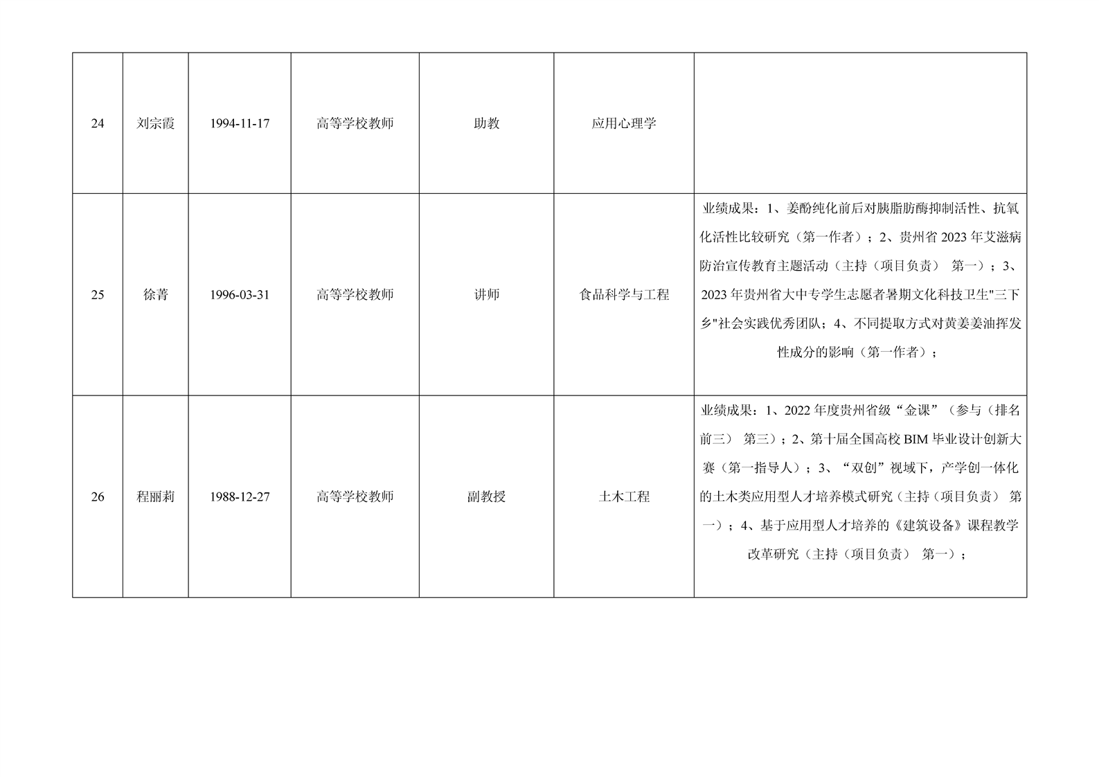 贵州省 2024 年度yabo鸭脖官网专业技术职务任职资格申报人员公示表(高教系列)