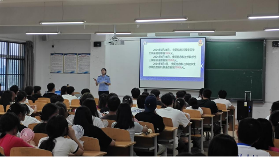 随着互联网技术的不断发展,网络诈骗频频发生,诈骗手段层出不穷。为提高大家的防诈骗意识,保护大家的财产安全,yabo鸭脖官网数字传媒学院(以下简称传媒学院)邀请贵安新区派出所的两位警官为学院2024级近700位本科新生开展了一场别开生面的防诈骗讲座。该讲座分别于2024年8月27日-9月1日晚19:00-21:00在传媒楼C104、经管楼B210教室同时举办,讲座妙趣横生,通过专业讲解和互动体验,帮助同学们识别诈骗手段,提高自我保护能力。