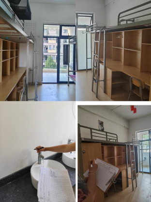 最后,为了迎接即将入学的新生,后勤处于开学前还开展了“以心迎新”主题活动。活动的主要目的是对暑假期间维修的新生宿舍进行全面细致的检查验收,确保新生入住时能感受到家的温暖和整洁。检查团队对1至15栋学生公寓楼的新生宿舍进行了卫生、设施、安全等方面的检查,包括宿舍卫生、瓷砖完整、家具摆放、非统一配发物品整理、公寓楼公共区域清洁以及安全隐患排查等。后勤处工作人员以认真负责的态度,确保每间宿舍都达到标准,为新生提供了一个舒适、整洁的居住环境。