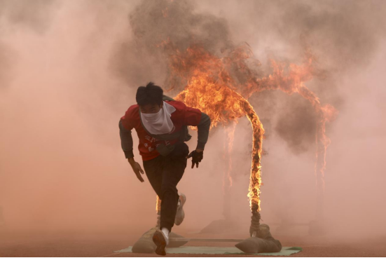 比赛现场,参赛选手们在全真模拟的“火灾现场”,围绕火情零距离、同呼吸共命运、突破重围、迷宫逃生等九个科目展开角逐。其中,生死一线这个环节是要求参赛者协同穿过一个3*4*2.5米的燃烧方形框架,这是模拟逃生过程中,突然出现高出楼道垮塌,求生者必须借助楼梯间的室内消防栓水带协力穿过圆圈,依次荡过起火垮塌的楼道。鸭脖参赛队员陈兴义表示,这次比赛对我而言是一个全新的体验,获得冠军以后很开心,说明经过这段时间的训练,我们的团队协作能力得到了提升,同时,我也想呼吁各位老师和同学一定要多学习消防知识,从身边的小事做起。”