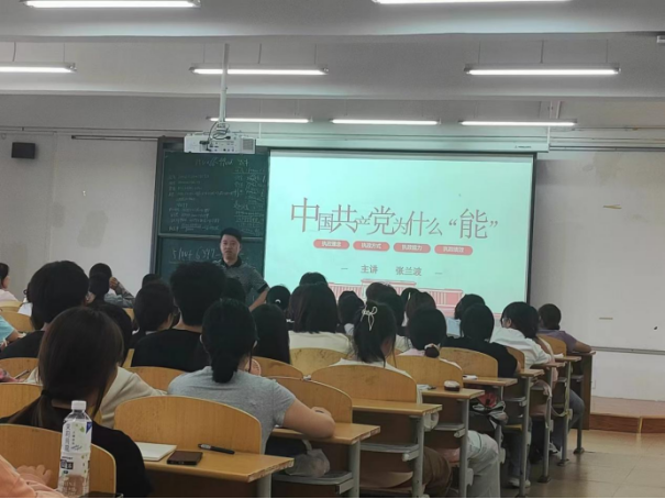 第三课:张兰波老师讲解《中国共产党为什么"能"》。张兰波老师先介绍了青马工程培训的目的及意义,通过回溯中国共产党的发展历程来阐述“中国共产党为什么能”。之后同学们积极发言,分享自己参与各类社会实践和志愿服务活动中的感受,表达要在实践中发扬“敢于担当,不忘责任”的精神,并展示青年风采和面貌。
