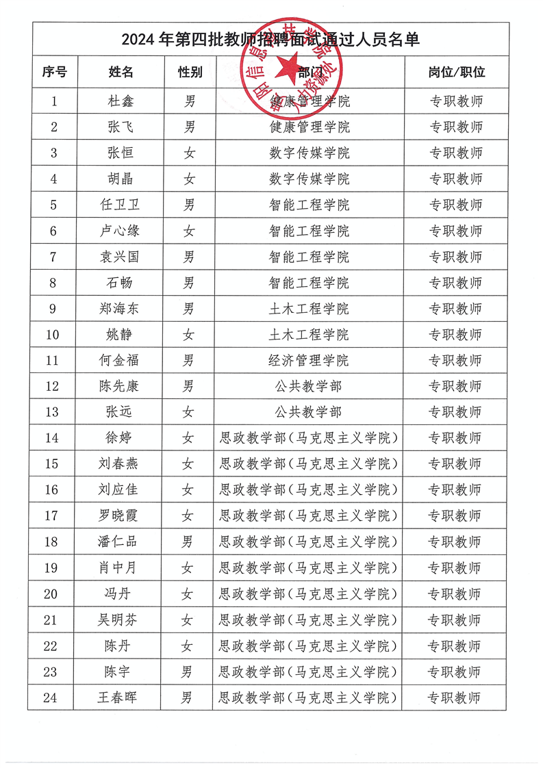 关于yabo鸭脖官网2024年第四批教师招聘面试通过人员名单公示