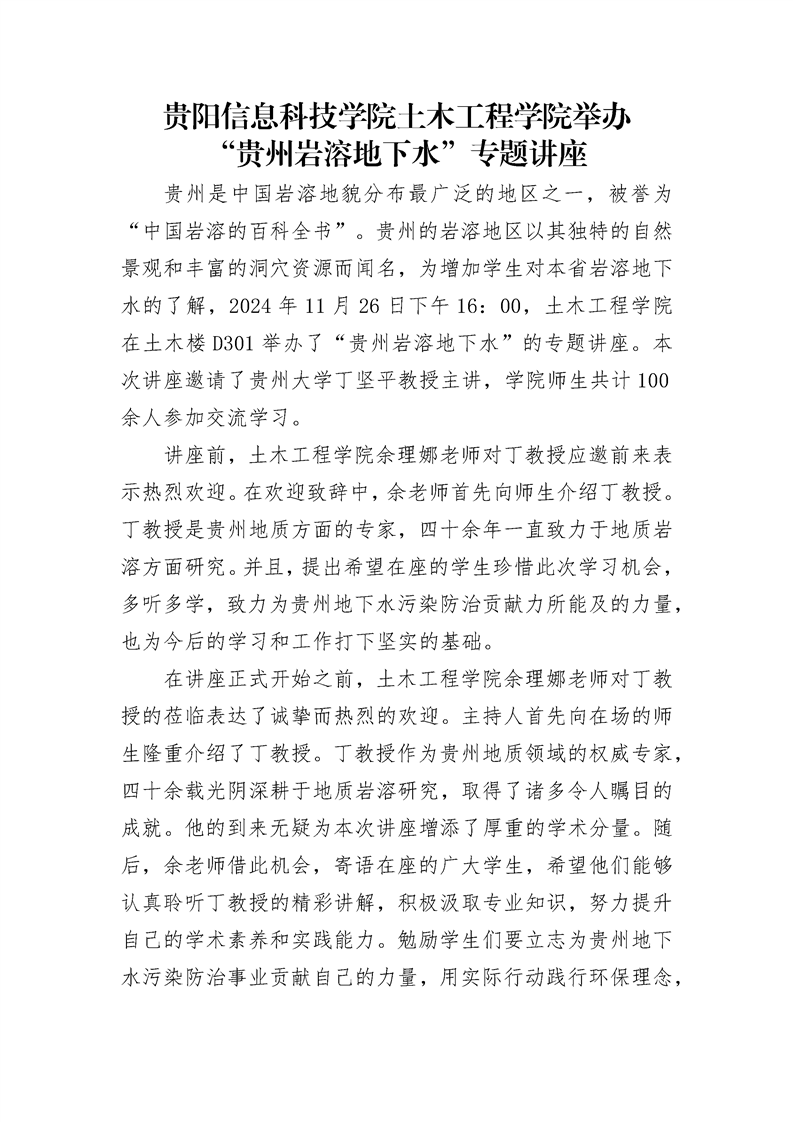 yabo鸭脖官网土木工程学院举办 “贵州岩溶地下水”专题讲座