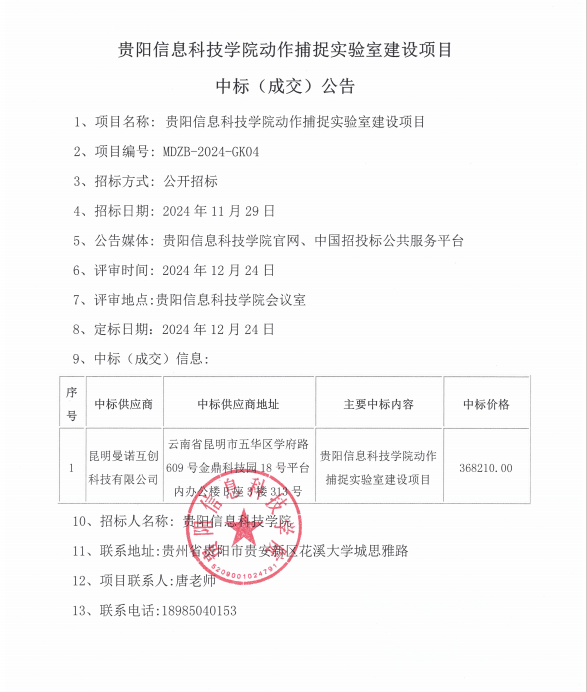 yabo鸭脖官网动作捕捉实验室建设项目中标(成交)公告
