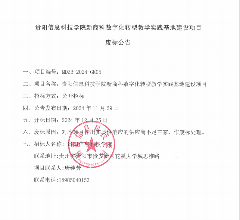 yabo鸭脖官网新商科数字化转型教学实践基地建设项目废标公告