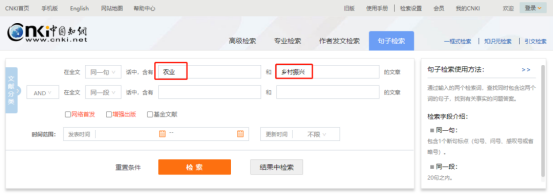 (3)输入检索条件 高级检索页面中间部分是检索区域,我们可以通过多个检索条件的限制进行更加精准的检索。