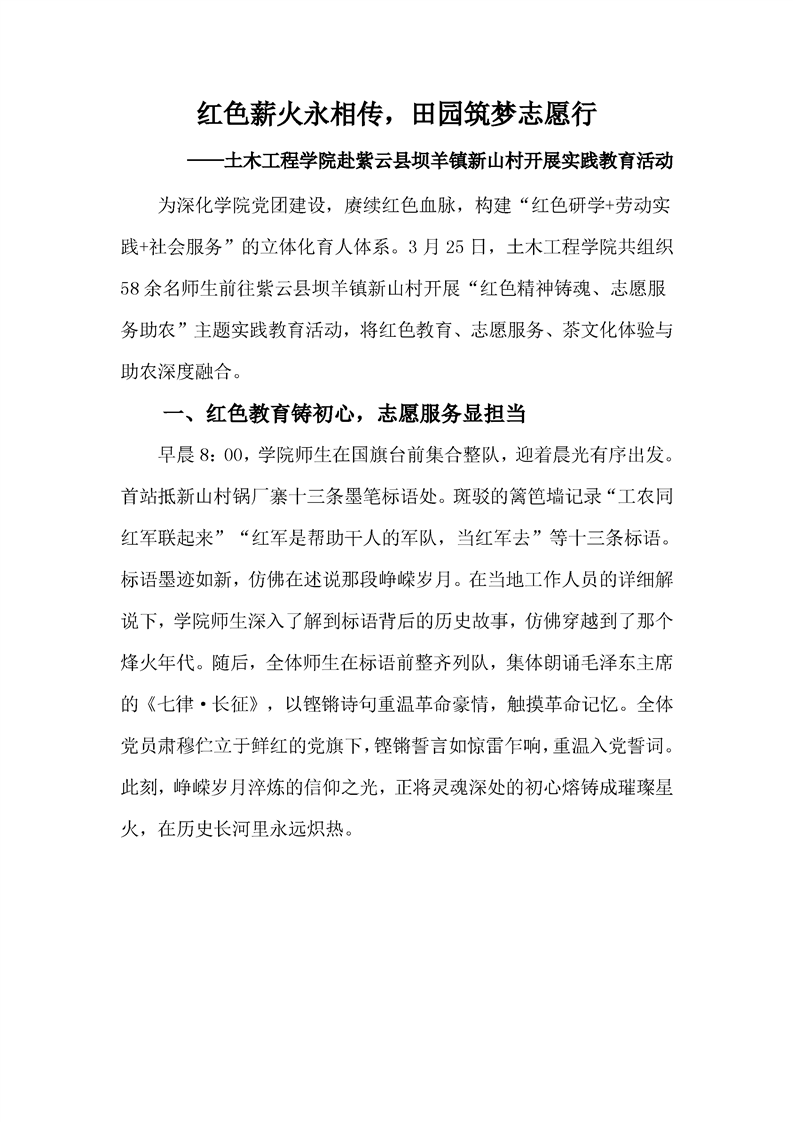 红色薪火永相传,田园筑梦志愿行——土木工程学院赴紫云县坝羊镇新山村开展实践教育活动