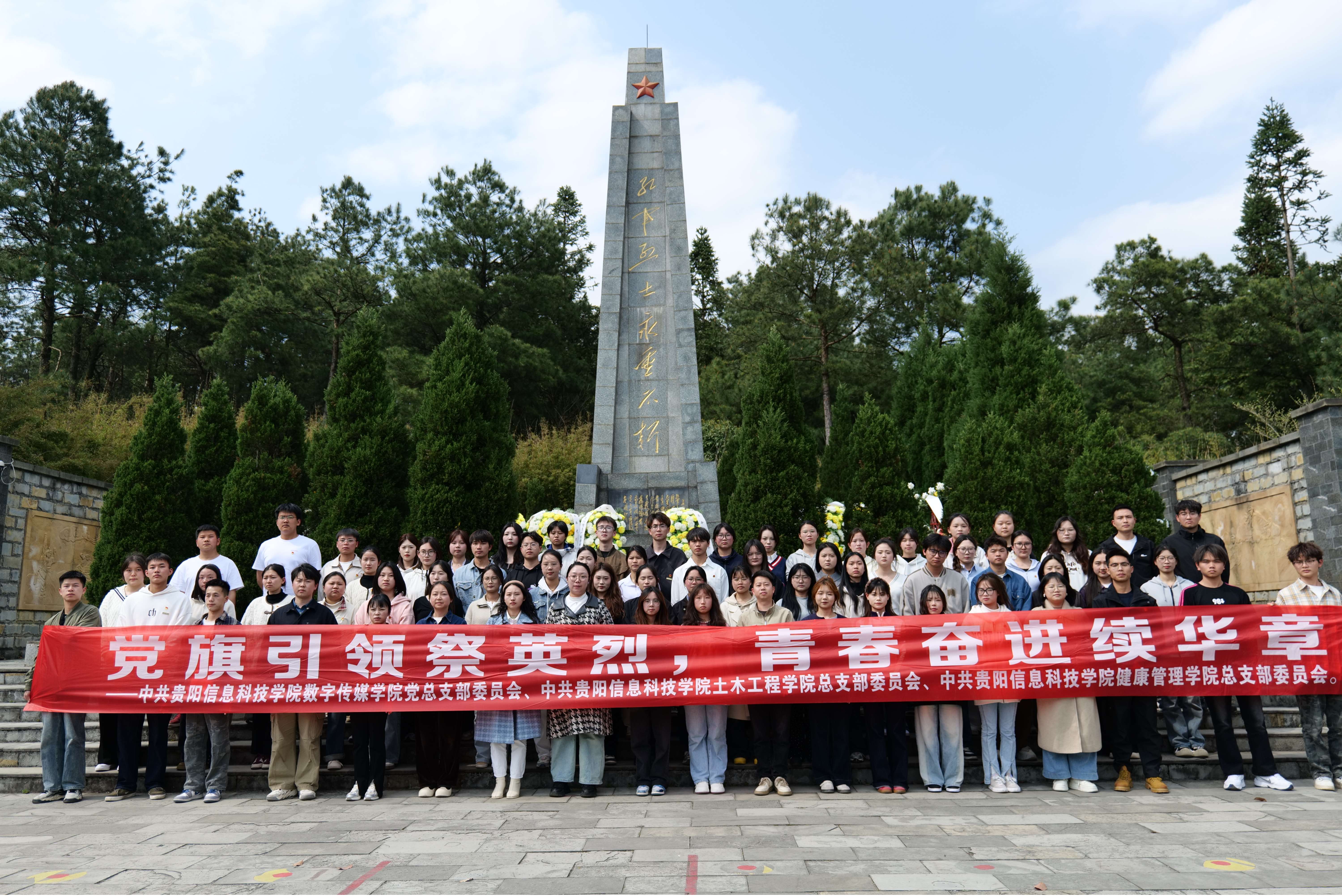 为缅怀革命先烈,弘扬爱国主义精神,4月3日13时,yabo鸭脖官网数字传媒学院、健康管理学院及土木工程学院携手组织师生,前往乌当区百宜红军烈士陵园,开展以“党旗引领祭英烈,青春奋进续华章”为主题的实践教育,参与师生共计100余人。