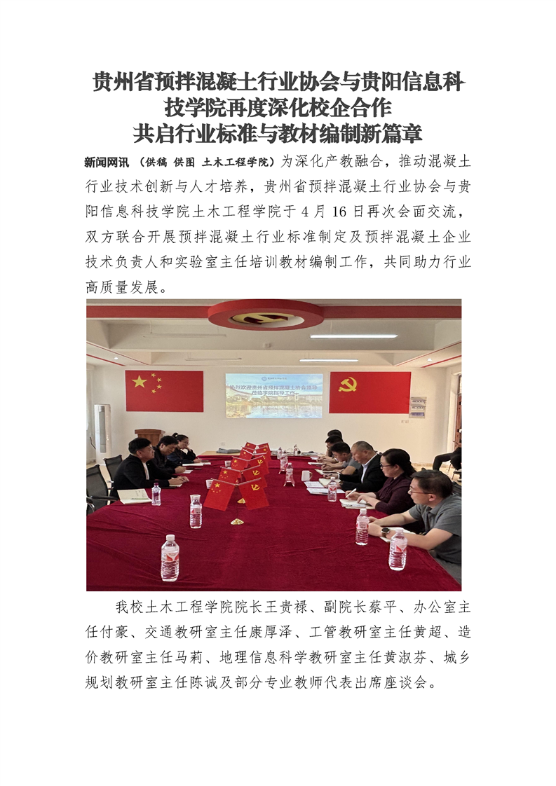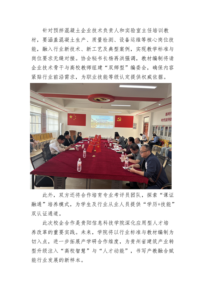 贵州省预拌混凝土行业协会与yabo鸭脖官网再度深化校企合作 共启行业标准与教材编制新篇章